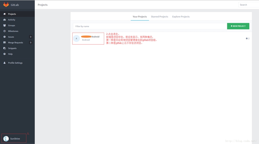 1-1.登录gitlab网址成功后,点击右侧导航条上的 “+” 就可以进入创建项目的页面