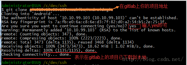 我们通过下面的命令生成密钥,请将命令中的YOUR_EMAIL@YOUREMAIL.COM替换为你注册gitlab时用的Email地址。 ssh-keygen -t rsa -C "YOUR_EMAIL@YOUREMAIL.COM" 在SSH生成过程中会出现以下信息,按屏幕的提示操作即可
