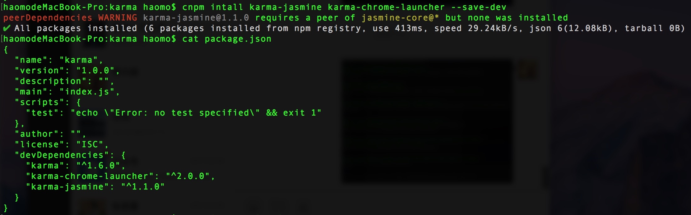 cnpmm isntall karma --save-dev