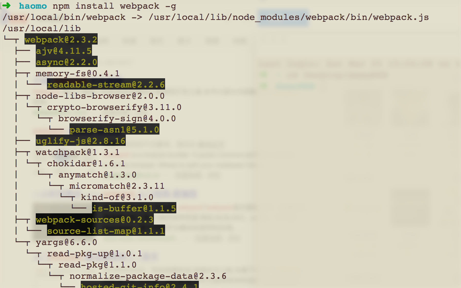 npm 的包安装分为本地安装(local)、全局安装(global)两种,从敲的命令行来看,差别只是有没有-g而已,如下: