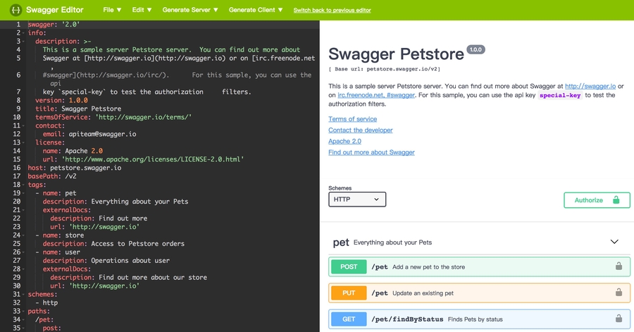 需要下载一个Swagger Editor,也可以直接使用在线版本http://editor.swagger.io/。