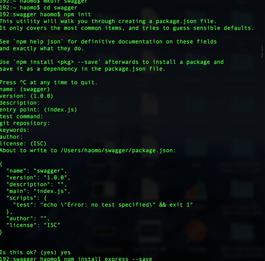 ~ >node >npm init